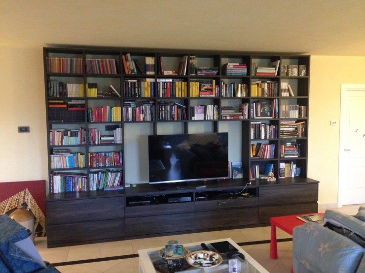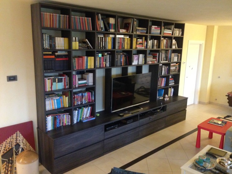 Vuoi liberarti anche tu, di tutti quegli scatoloni pieni di libri, magari situati in cantina o in garage? Ecco il nostro ultimo lavoro! Una fantastica libreria, con cassettoni e apposito spazio per la TV. Così, tutti quei libri, non rimarranno più abbandonati al loro destino, nel buio di una scatola e verrà anche liberato un po di spazio, sempre utile.